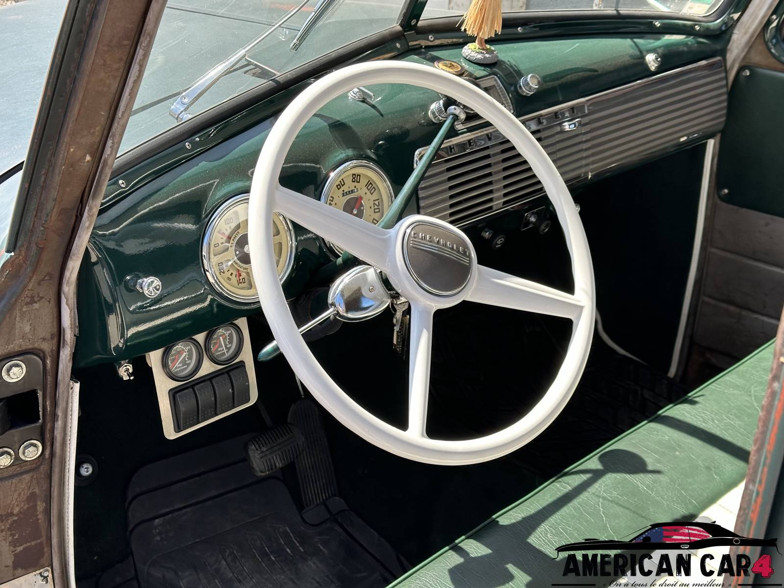 Le coeur de la bête ? Un moteur V8 Chevy 350ci (5,7L) de 275ch neuf ainsi qu'une boite automatique Turbo TH400 neuve. Le moteur est muni d'une grosse pipe d'admission en aluminium, d'un gros carburateur Edelbrock à 4 corps, d'un filtre à air spécial, de couvre-culasses en aluminium, d'un allumage électronique, d'un échappement en inox et d'un radiateur haute performance Copper avec ventilateur électrique.