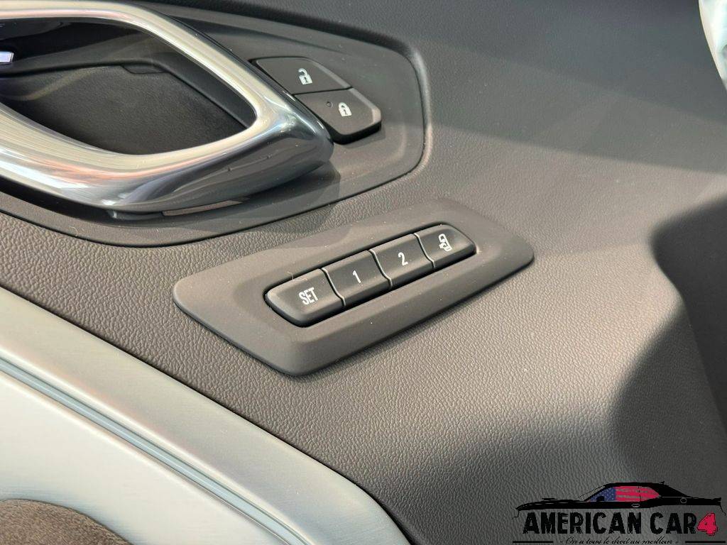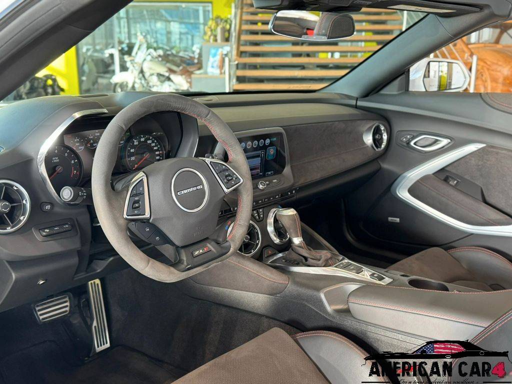 Cette Camaro ZL1 se distingue par un châssis Magnetic Ride Control, qui ajuste automatiquement la suspension pour offrir un équilibre parfait entre confort et performance. Son insert de capot en carbone accentue son design agressif tout en allégeant le poids à l’avant. Le système d’échappement à clapets libère une sonorité rauque et modulable.